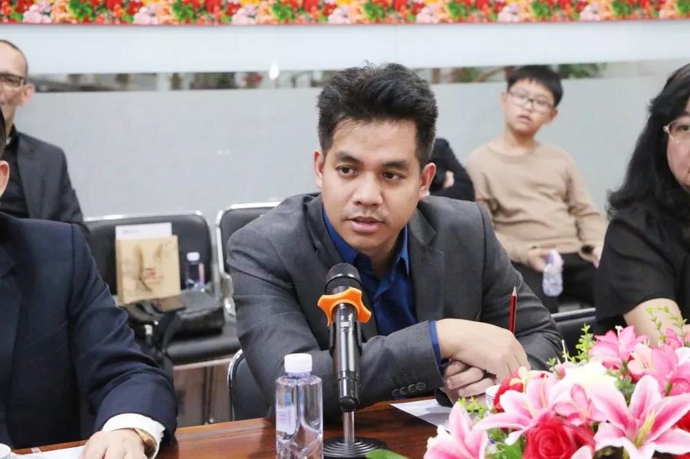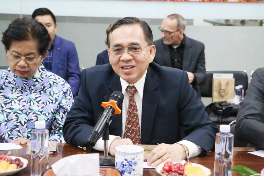 交流会上,集团董事长肖德军对泰中经济协会主席宋立普吉等人到访表示热烈欢迎,并向来宾展示我司宣传视频以及司歌,随着激动人心的音乐旋律,现场气氛高涨,随后详细介绍集团基本情况,发展历程以及各大业务板块。