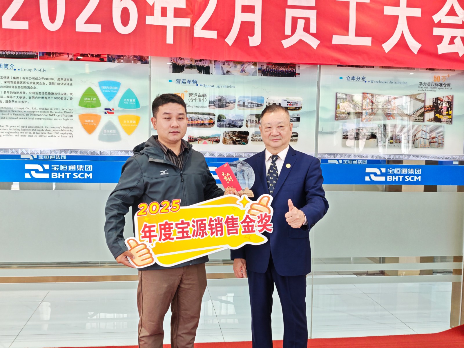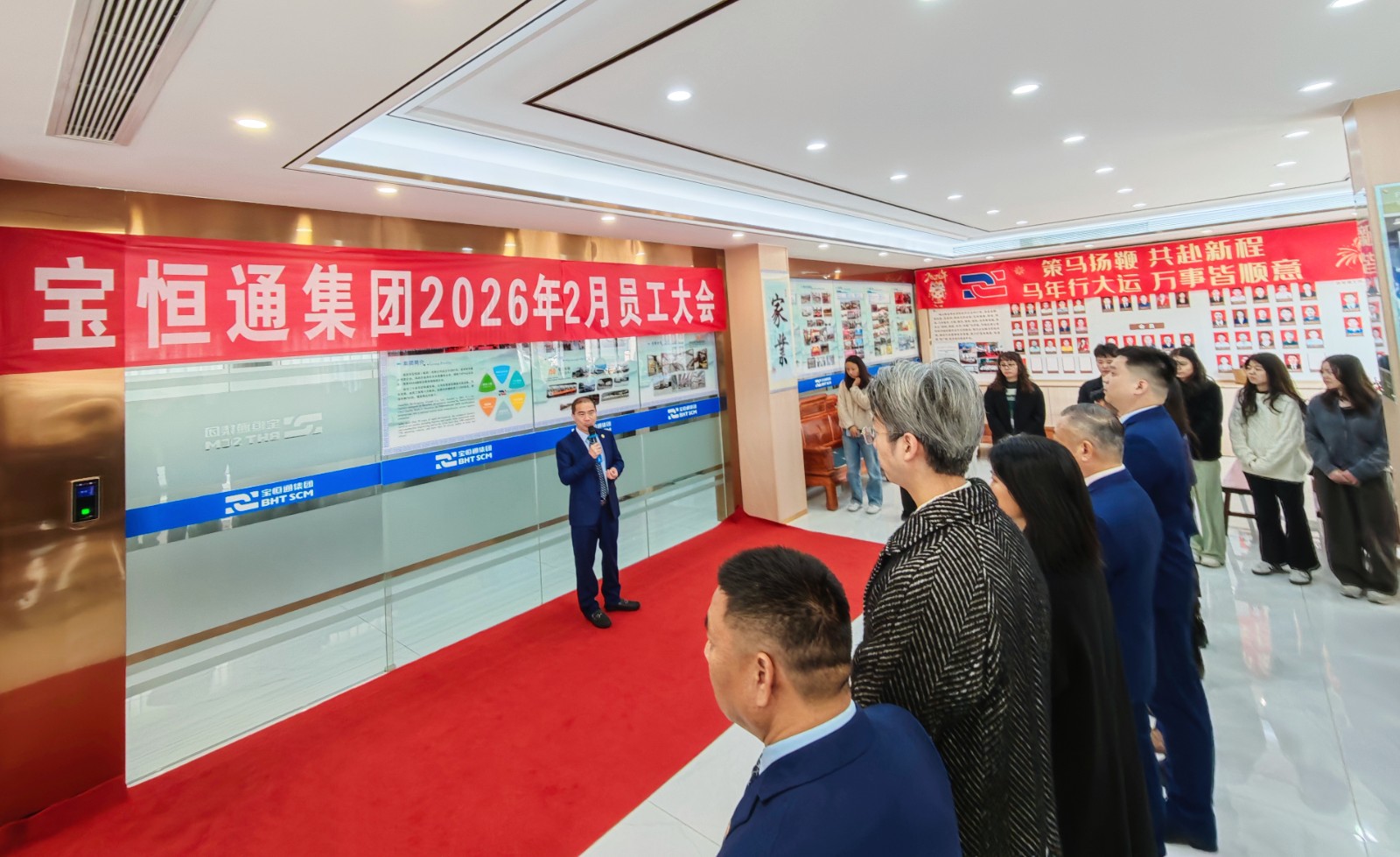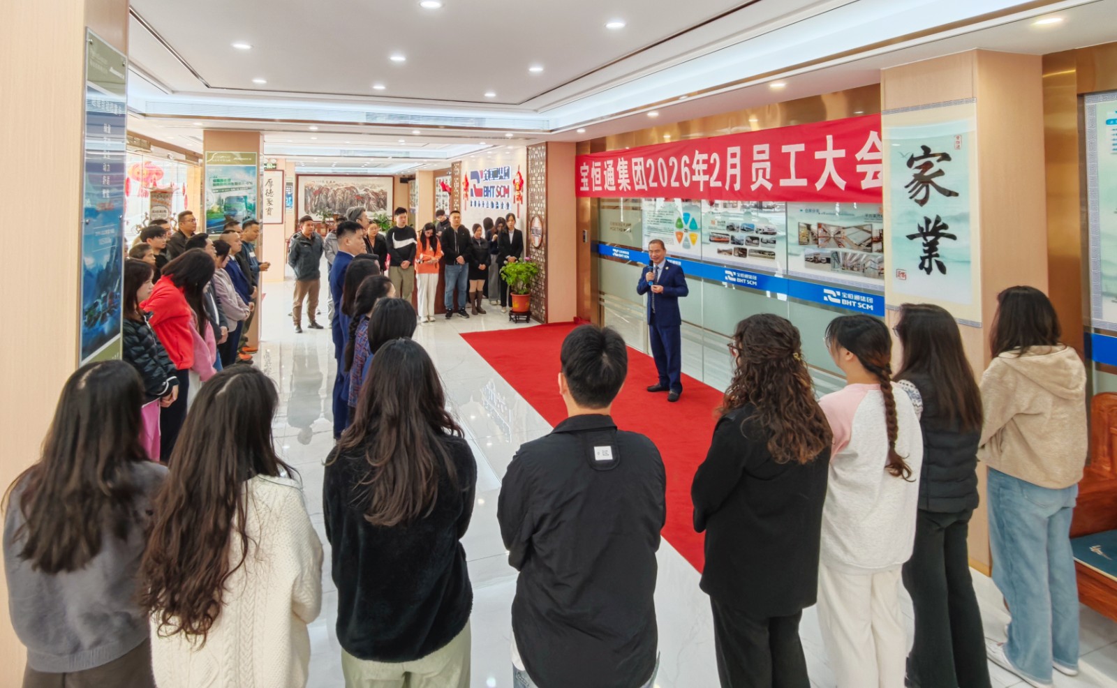 2026年2月9日上午,宝恒通集团二月员工大会在总部一楼召开。集团董事长肖德军与深圳总部、实业公司、宝源汽贸公司、建筑工程公司员工齐聚一堂,总结过往工作,表彰先进典型,安排部署2026年重点任务。