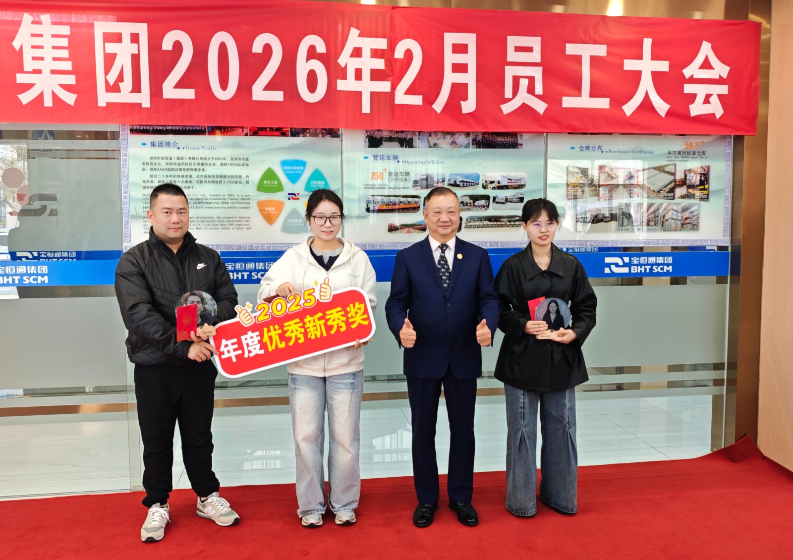表彰结束后,肖德军董事长部署接下来的工作时表示,2026年,公司以中港物流、“中国—东南亚”跨境物流、多式联运为核心,深耕普货业务开拓与集拼模式创新,要求各部门细化月度目标,强化跨部门协同联动。他鼓励全员主动拥抱变化,紧跟 AI 发展、行业趋势与国际化步伐,以 AI 智能赋能供应链各环节应用和管理升级,以新思维多维度实现工作效率与服务品质双提升。最后,他向全体员工及家属送上马年新春的美好祝福。