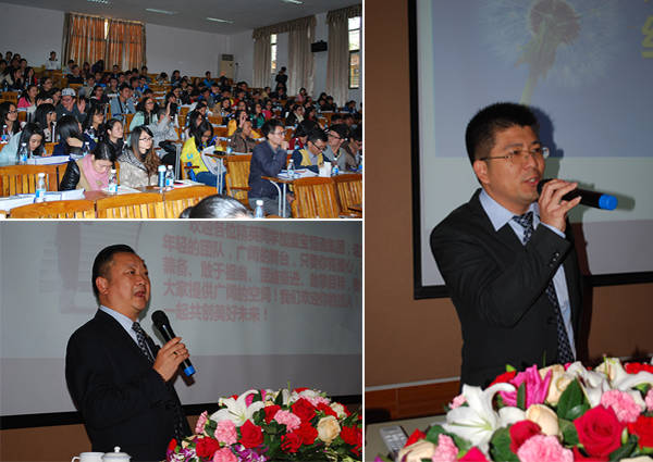 (深圳宝恒通集团职场讲座,肖德军总经理和公司经营管理部经理周广乐先生演讲现场。PS:周广乐先生为嘉应学院2006届地理系毕业生)