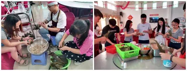 大家齐聚欧曼一号,分为两组开始大展身手!活动现场有包粽子娴熟的能手,有从未包过粽子的新手,大家讨论着端午节各地的习俗和不同粽子的包法,现场热火朝天,其乐融融。