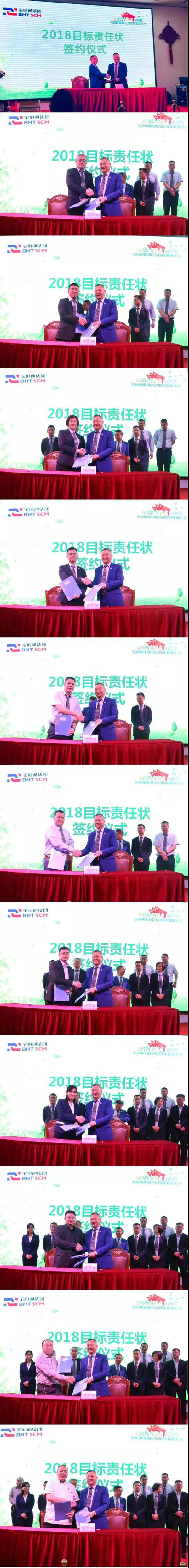 根据集团新一年的经营管理发展规划和绩效管理相关规定,大会特别安排了新一年目标责任状签订仪式,首先由集团董事长肖德军与集团各部室、各子公司负责人签订《2018经营管理目标责任书》,然后由各子公司负责人与所辖区域或部门管理代表依次签约。