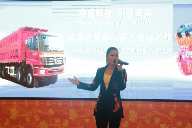 短暂的休息过后,欧曼自卸车客户高端品鉴会活动拉开了帷幕。活动现场,汽贸公司黄丽亚经理详细讲解了欧曼自卸车及其相关配套服务,重点介绍了产品突出的节油性能。